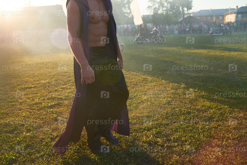 Молодой взрослый мужчина гуляет на открытом воздухе во время публичного мероприятия в Sunset