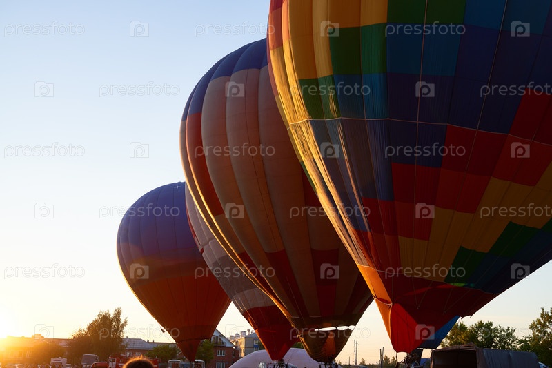 Красочные воздушные шары готовятся к полету во время Sunrise Outdoor Event