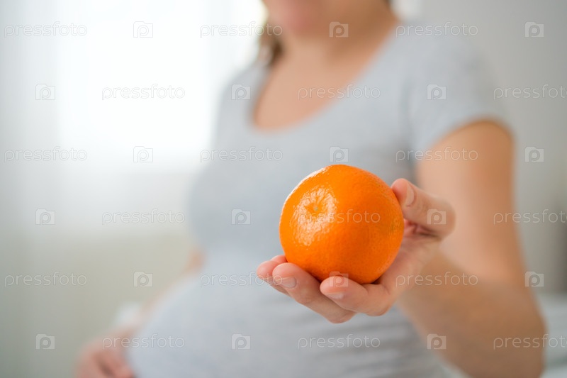 Беременная женщина с оранжевым прикосновением живота