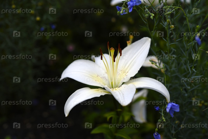 Светло-желтый цвет лилии на темном фоне. светлый цветок в темном саду. лилия
