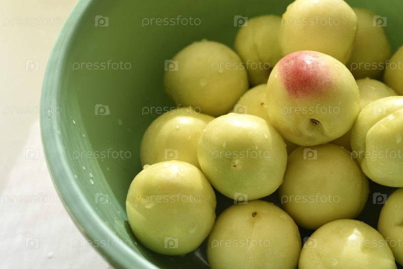 Зрелая слива в зеленом бассейне сочный фрукт зрелые сливы в капельках воды