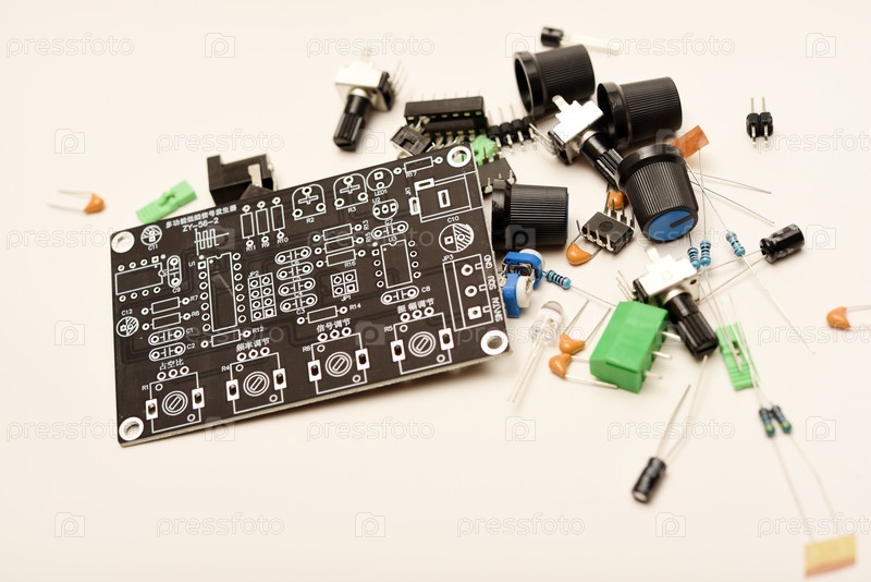 Полный комплект электроники DIY для сборки функционального радиоустройства с различными радиокомпонентами и печатной платой.Идеальное изображение, представляющее собой практический процесс обучения и создания проектов для энтузиастов по электронике