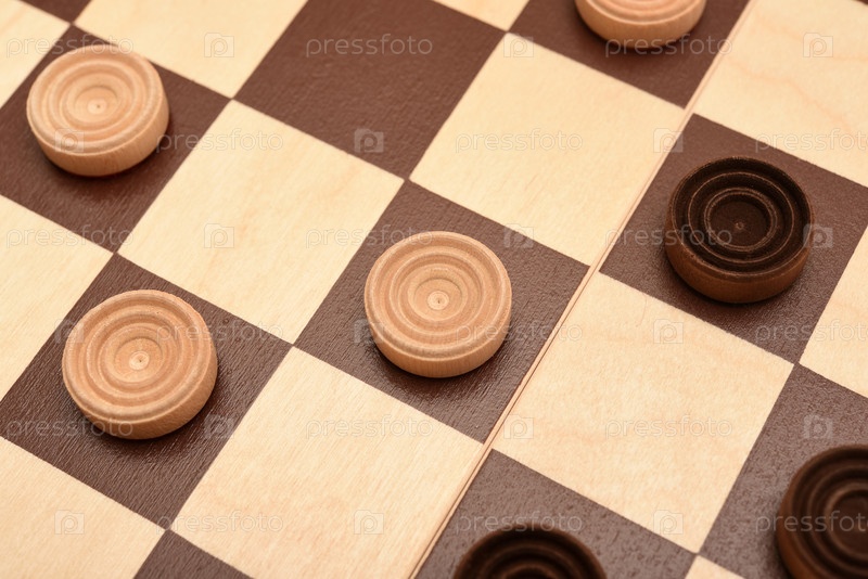 Деревянные шашки на доске