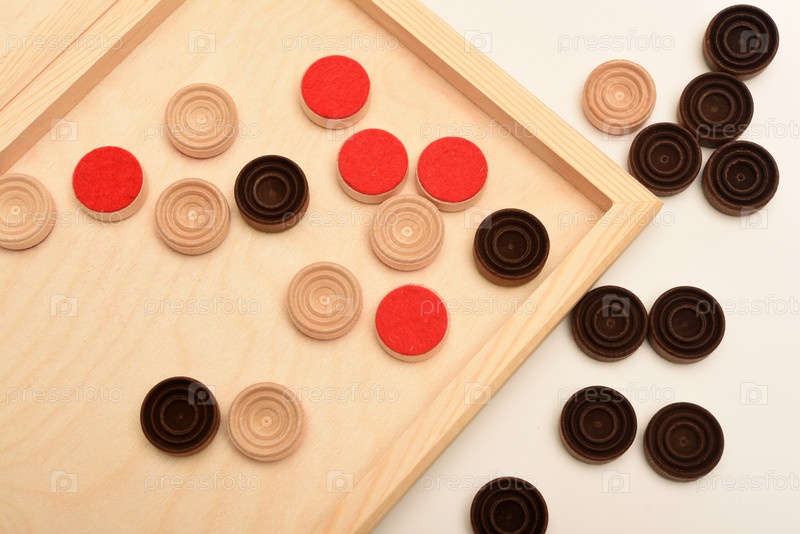 Деревянные шашки на доске