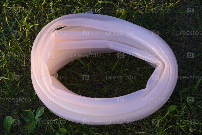 Вилка из резинового или силиконового шланга на траве в саду