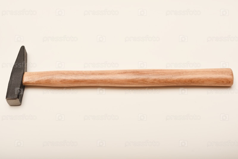 Маленький молоток с деревянной ручкой.Молотик на белом фоне