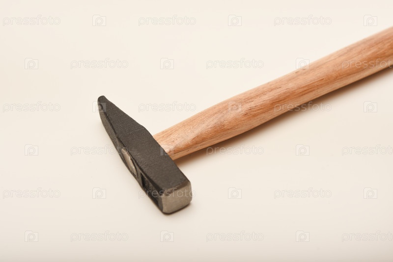 Маленький молоток с деревянной ручкой.Молотик на белом фоне