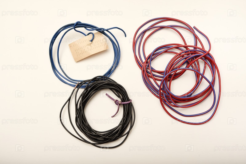 Банды медных соединительных проводов в резиновой изоляции. многоцветные провода