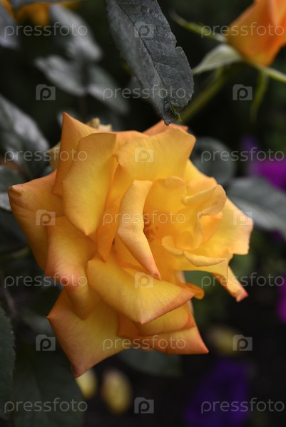 Оранжевые розы в саду.Большой розовый цветок.Ярко-оранжевые розовые бутоны