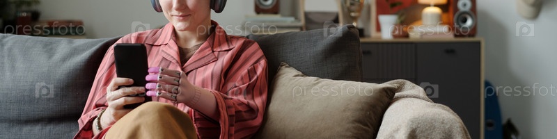 Молодая взрослая женщина с протезированной рукой транслирует СМИ на смартфоне