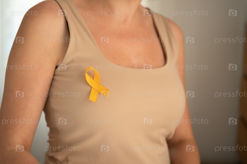 Желтая атласная лента на одежде символизирует сострадание и солидарность с семьями детей, больных раком