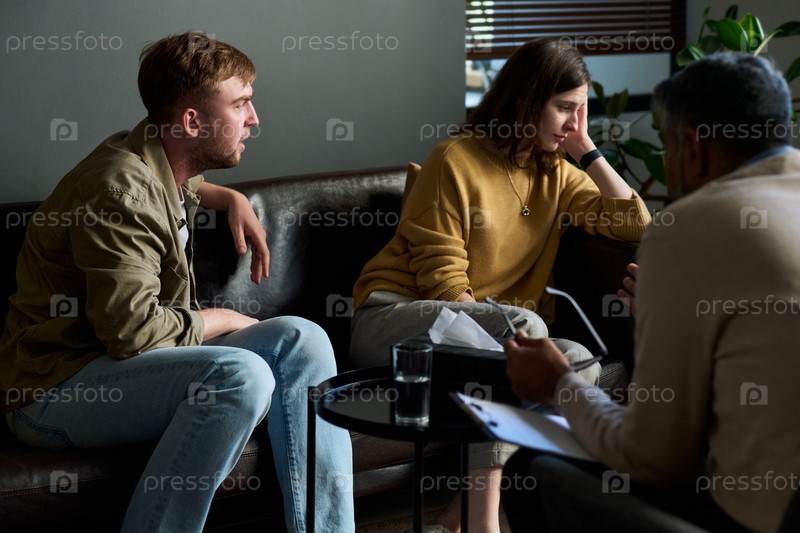 Молодая пара посещает консультационную сессию с мужчиной среднего возраста