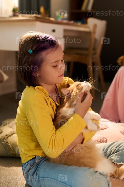 Прикоснуться к коту, сидя в помещении днем Домашняя девочка