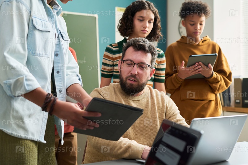 Руководство разных подростков-мужчин с использованием цифровых планшетов