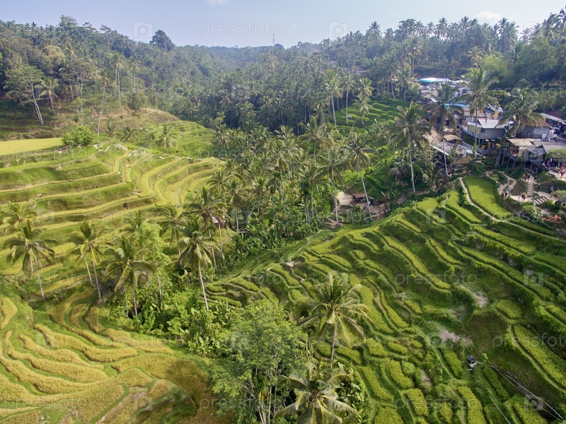 Роскошные зеленые террасовые рисовые поля, простирающиеся по тропическому холмистому ландшафту