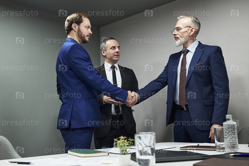 Руки руководителей после успешной деловой встречи в офисе