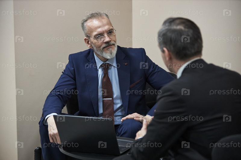Два бизнесмена среднего возраста, занимающиеся профессиональным разговором