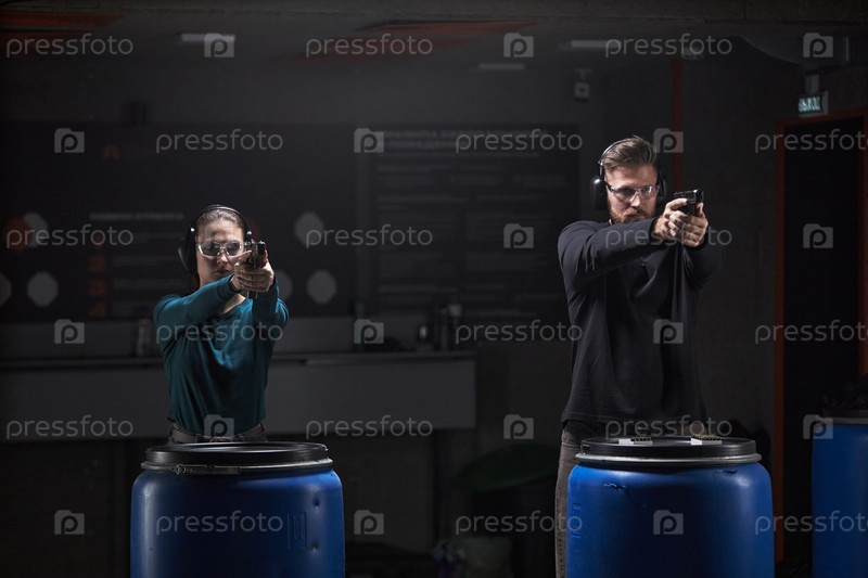 Молодой мужчина и молодая женщина практикуют стрельбу на расстоянии