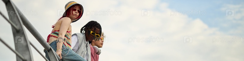 Группа молодых многонациональных друзей, отдыхающих на свежем воздухе в летний день