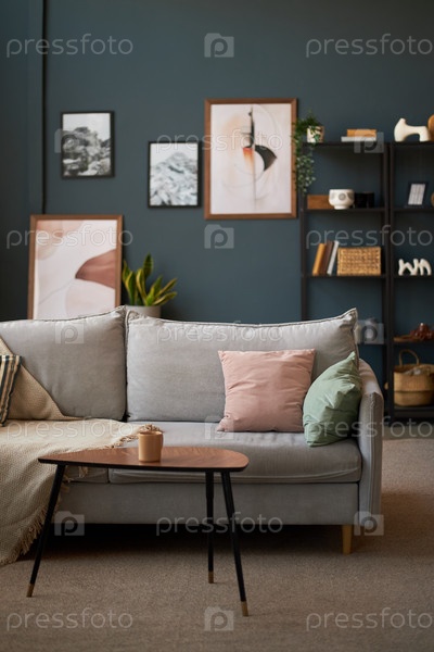 Интерьер современной гостиной с минималистическим диваном и декоративными элементами