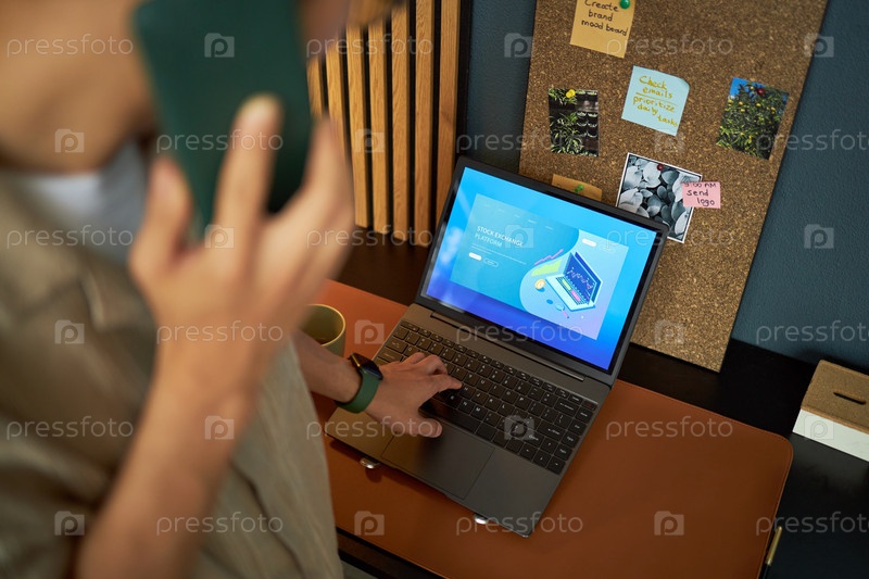 Молодой взрослый азиатский мужчина использует ноутбук и разговаривает со смартфоном в офисной рабочей зоне