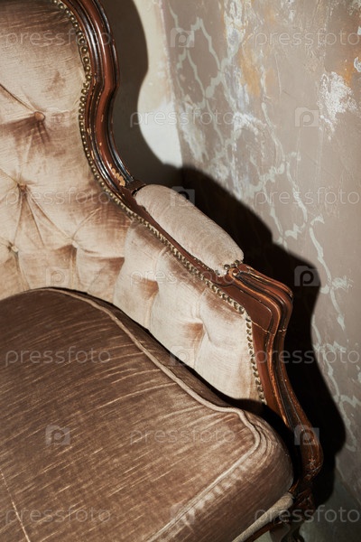 Близкое изображение винтажного кресла с бархатной оболочкой