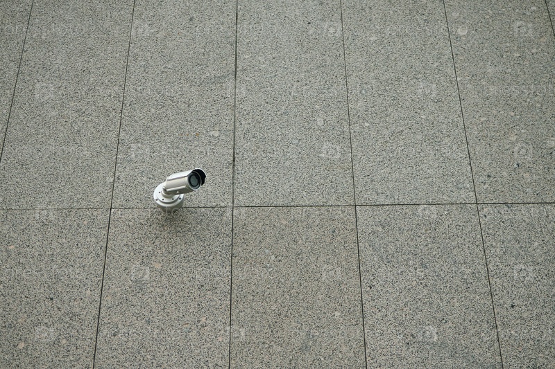 Камера видеонаблюдения контролирует наружную зону на поверхности бетонной плитки