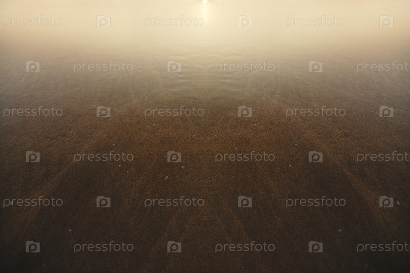 Близкий взгляд на спокойное кристально чистое море с темно-коричневым песчаным дном и маленькими моллюсками