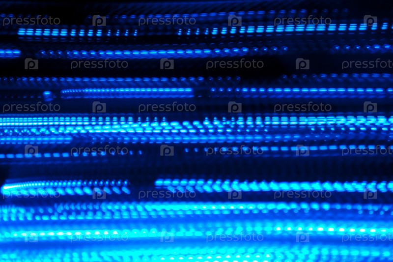 Близкий взгляд на гирлянду синего светящегося диода, длительная экспозиция