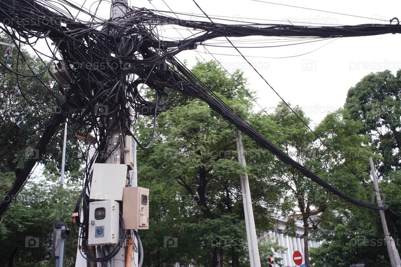 Город Хошимин, Вьетнам - 16 июня 2013 года: Запутавшиеся электрические кабели на улице