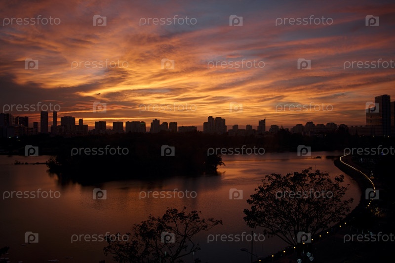 Фу Май Хунг, город Хо Минь, Вьетнам - 16 декабря 2014 года: живописный вид на закат солнца