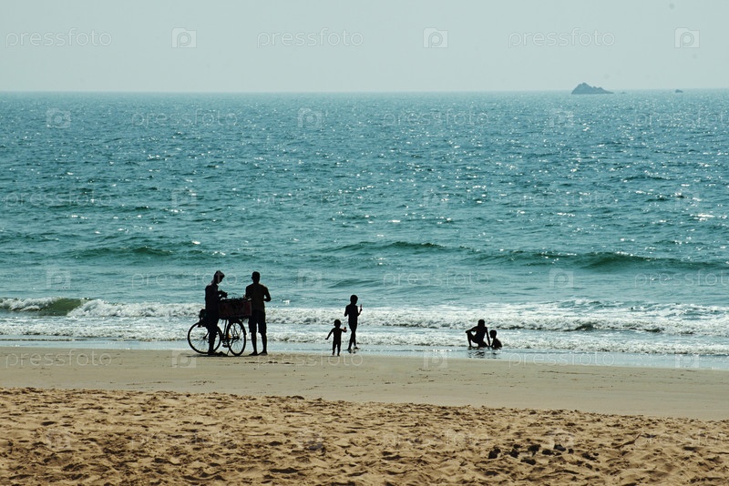 Гоа, Индия - 19 февраля 2016 года: Человек покупает мороженое для детей на пляже