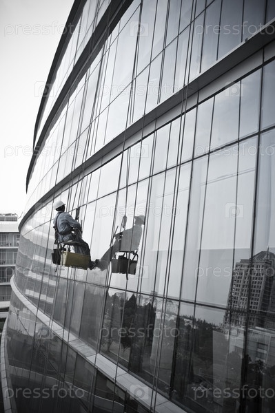 Город Хошимин, Вьетнам - 6 сентября 2013 года: Умыватель окон небоскреба на работе