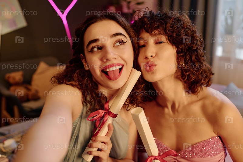 Портрет двух молодых взрослых женщин, празднующих выпуск вместе