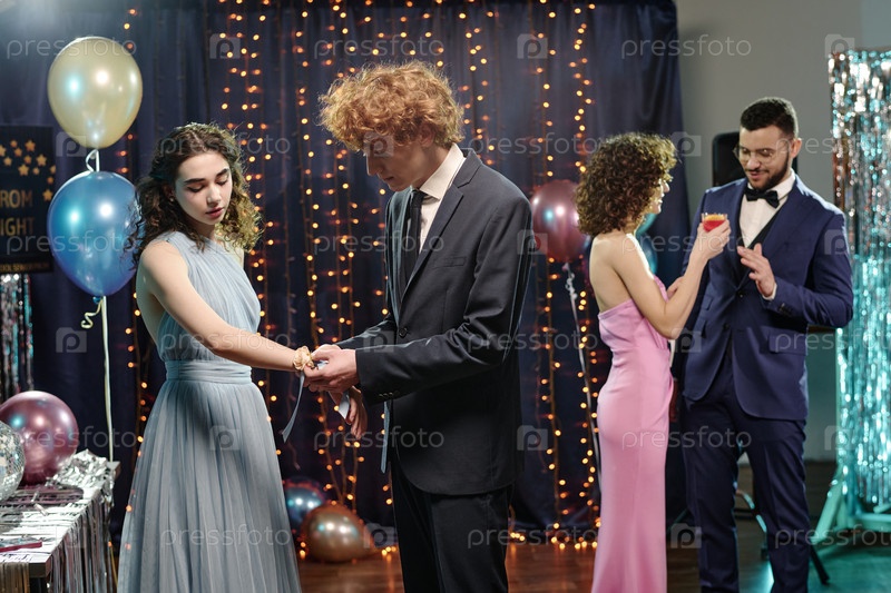 Подростки, посещающие выпускной вечер и общаясь вместе