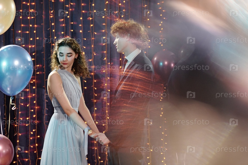 Девушка-подросток, держащаяся за руки с мальчиком-подростком на танцах