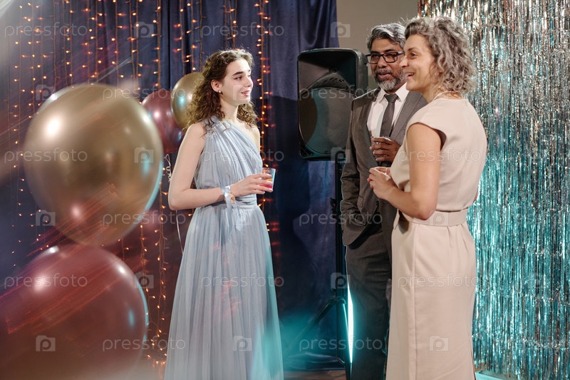 Мультиэтнические взрослые и подростки общаются на официальной вечеринке с напитками