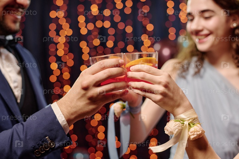 Подросток и девочка-подросток тостают за напитки на официальном праздничном мероприятии