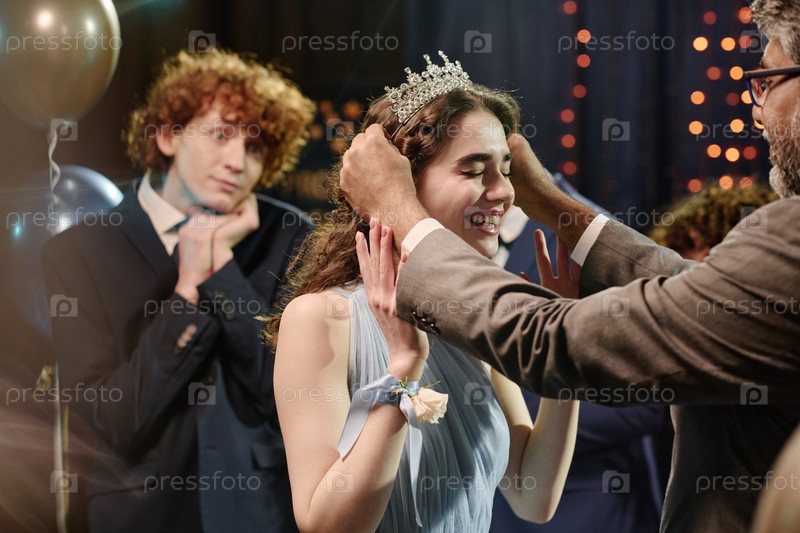 Подростковая девушка улыбается, получая тиару во время празднования