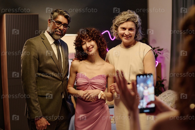 Женщина среднего возраста и мужчина, позирующие с молодой взрослой женщиной
