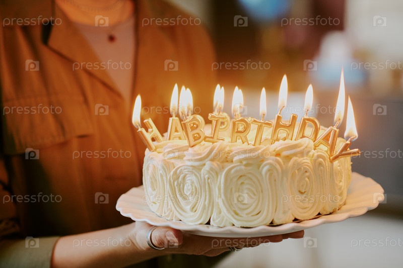 Молодая взрослая женщина держит рождественский торт с зажженными свечами в помещении