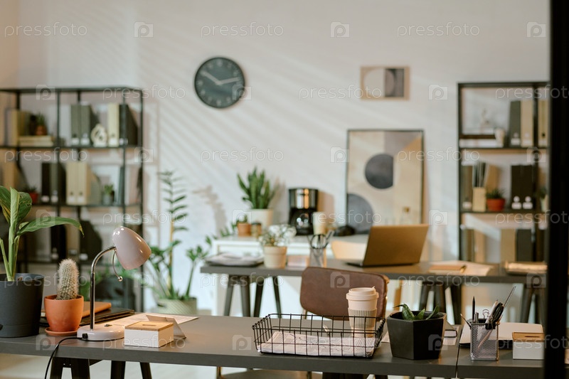 Офисное рабочее пространство с ноутбуками и современными комнатными растениями в дневное время