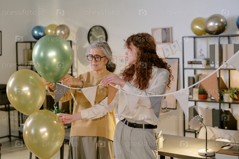 Женщина среднего возраста и молодая взрослая женщина украшают офис
