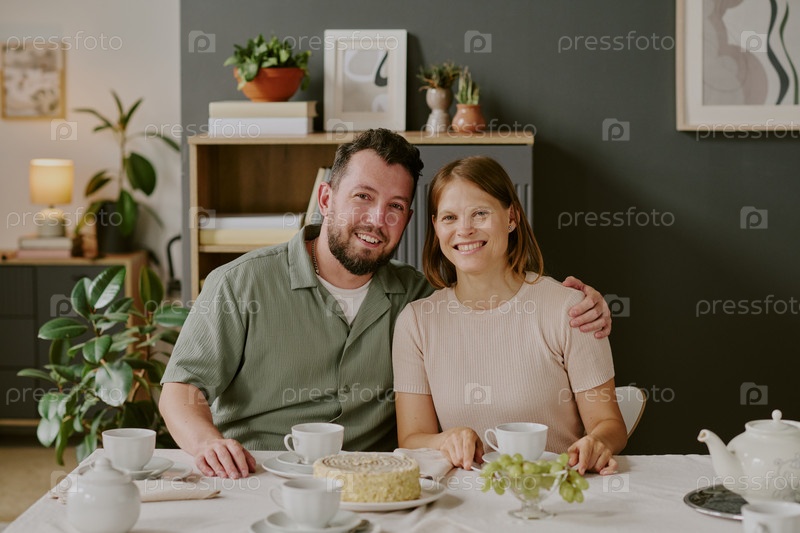 Портрет молодой пары, улыбающейся во время празднования вместе в помещении