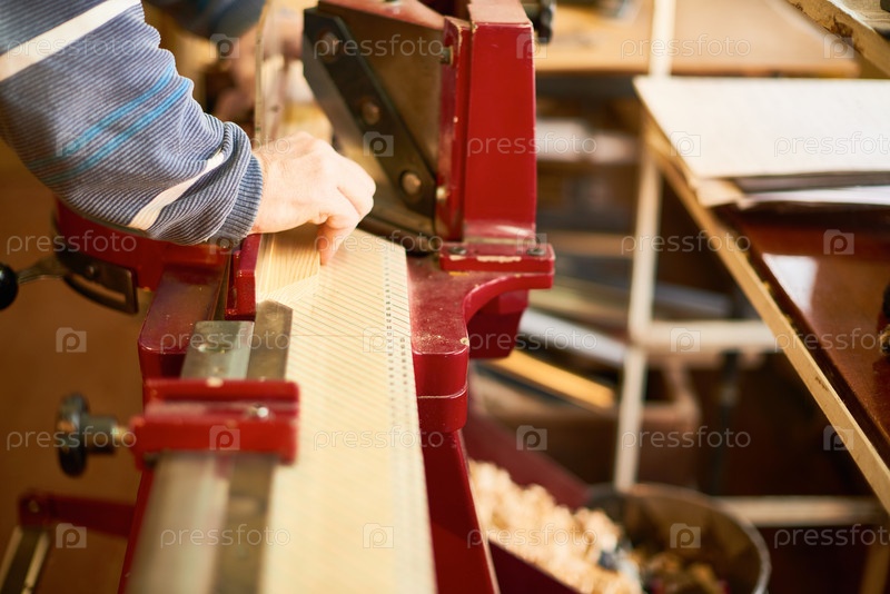 Человек, работающий с промышленной деревообрабатывающей машиной в мастерской