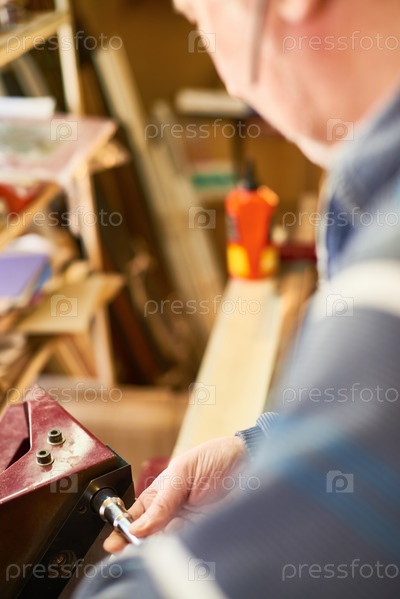 Человек, использующий машины и оборудование во время работы в деревянной мастерской