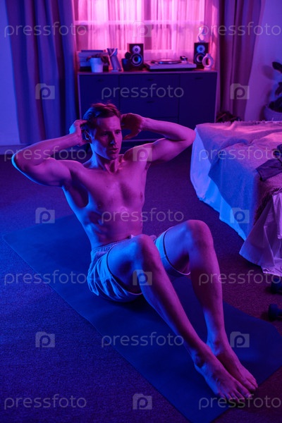 Упражнение брюшных пузырей на йога-матке в домашней спальне