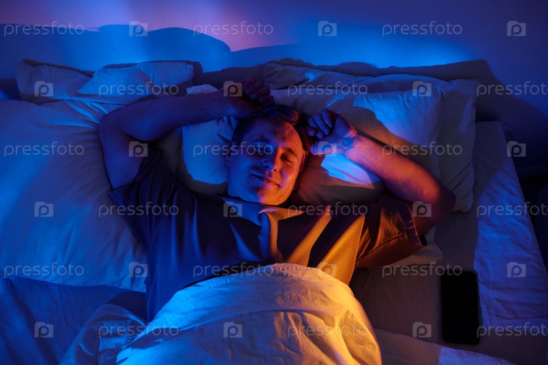 Мужчина спит спокойно в постели по ночам