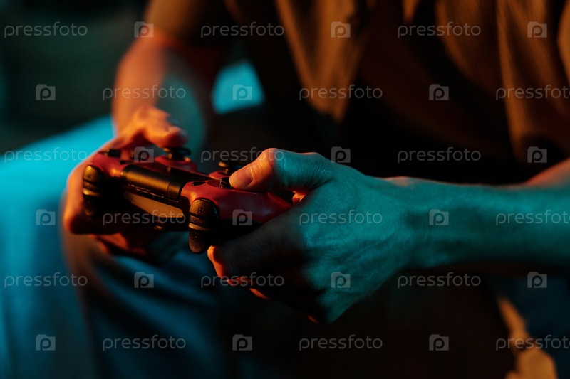 Мужчина играет в видеоигры с беспроводным контроллером внутри дома