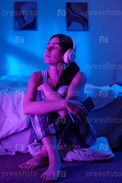 Женщина, расслабляющаяся с наушниками и слушающей музыку